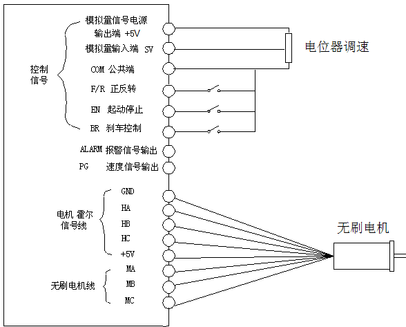 * 無刷電機驅動器和無刷電機需良好可靠接地,否則有可能無刷電機轉速不平穩。